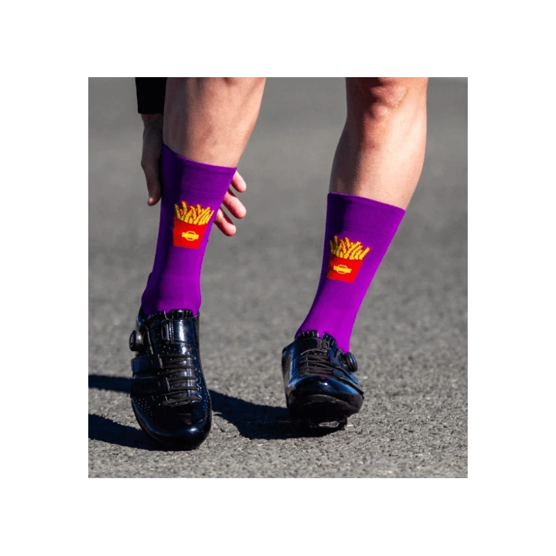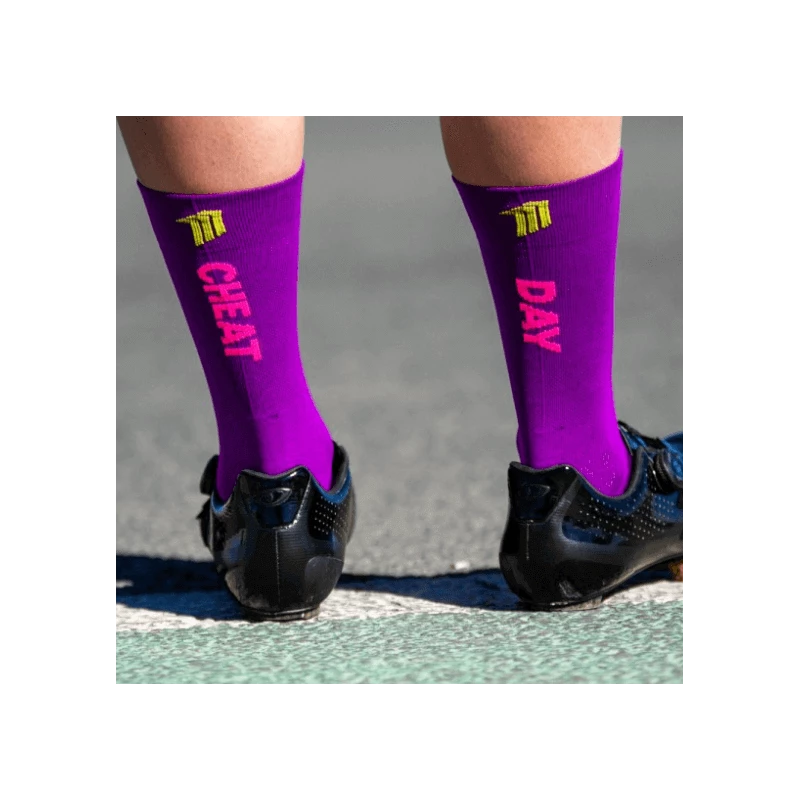 Calcetín Sporcks Cheat Day PurpleCalcetín de ciclismo ultra ligero con un ajuste de compresión bajo y fabricado principalmente en Meryl®. Están diseñados para ofrecer máxima transpiración y gran comodidad. Confeccionados para un alto rendimiento en la bici mezclando calidad y diseño por partes iguales.