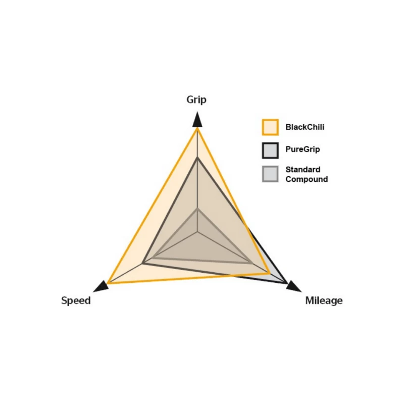 La compleja tecnología del compuesto BlackChili Compound se elabora únicamente en la planta alemana de Korbach, debido a que dependiendo de la aplicación del neumático, se ajusta la formulación específicamente para esa disciplina, para obtener el equilibrio perfecto entre agarre y resistencia a la rodadura.